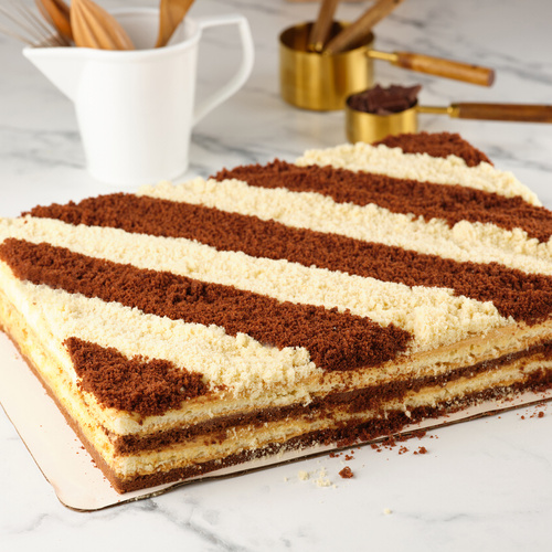 Thin layers of honey-caramel sponge combined with creamy filling and delicate caramel.
